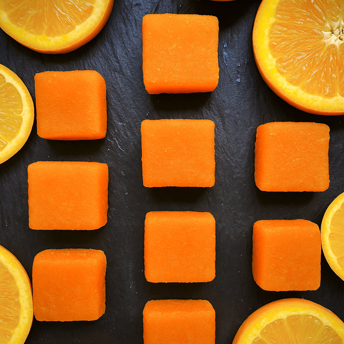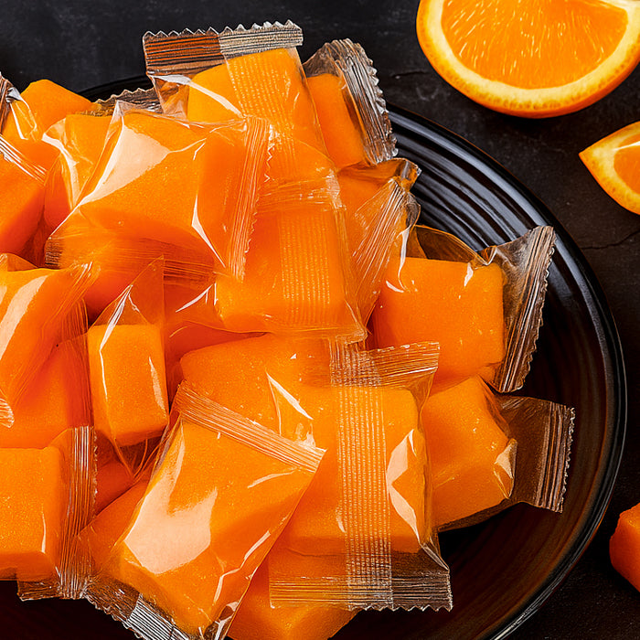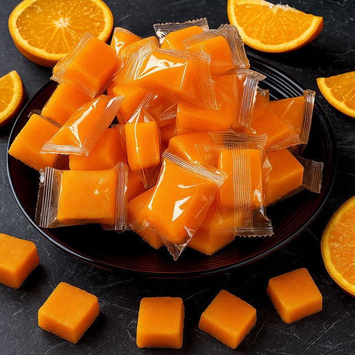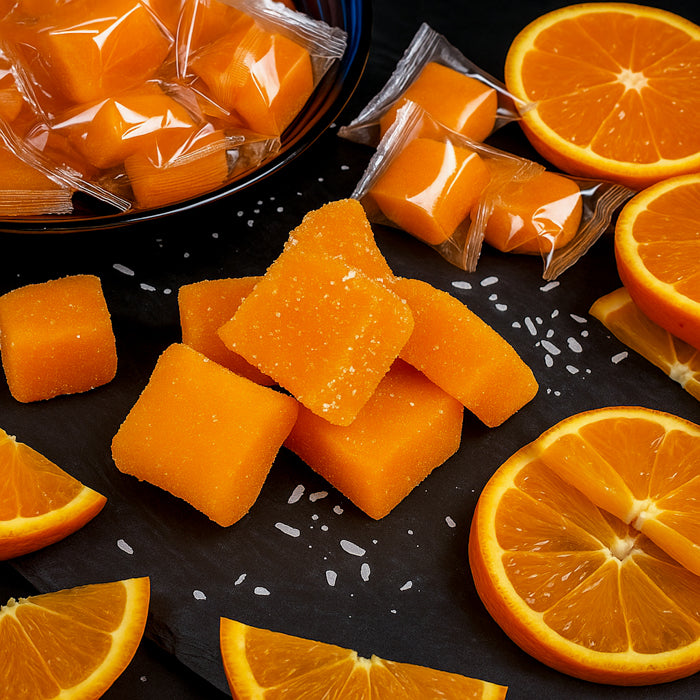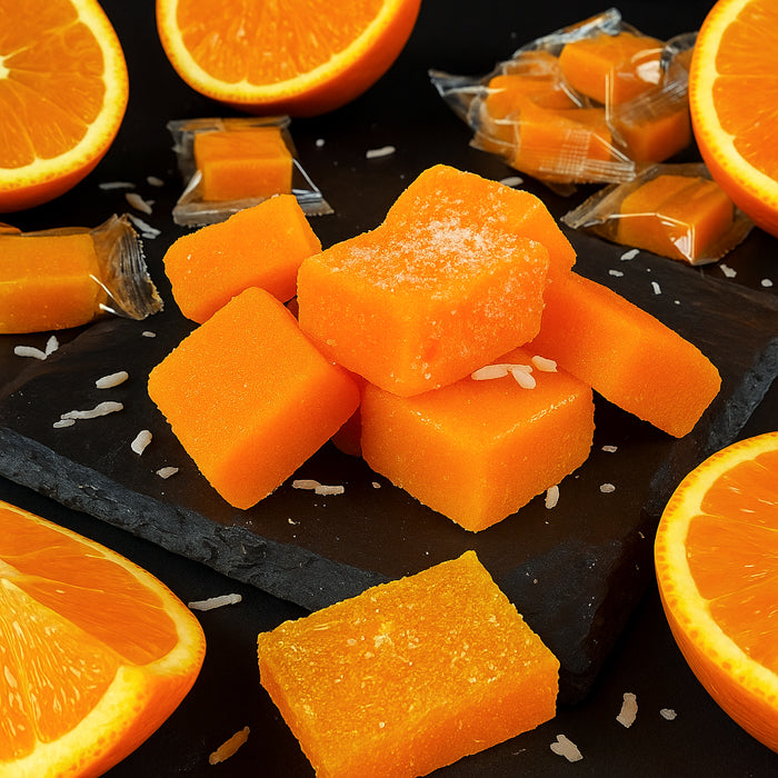Šīs konfektes atgādina marmelādi, taču to tekstūra ir maigāka un vienlaikus stingrāka — patīkami elastīga un sulīga. Garša ir sabalansēta: salduma un skābuma duets, kas atgādina svaigi spiestu apelsīnu sulu.