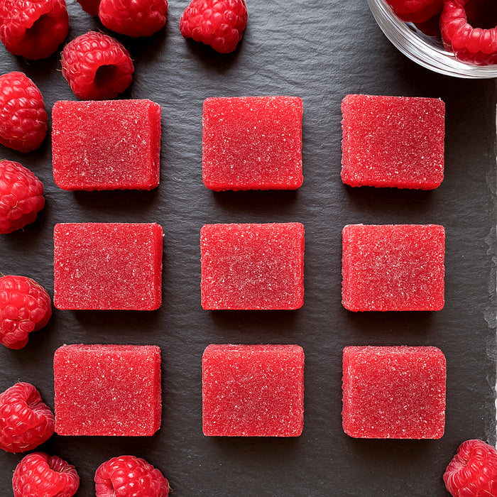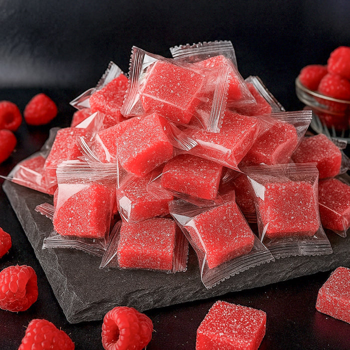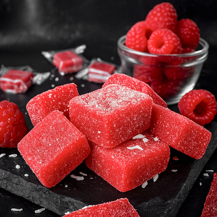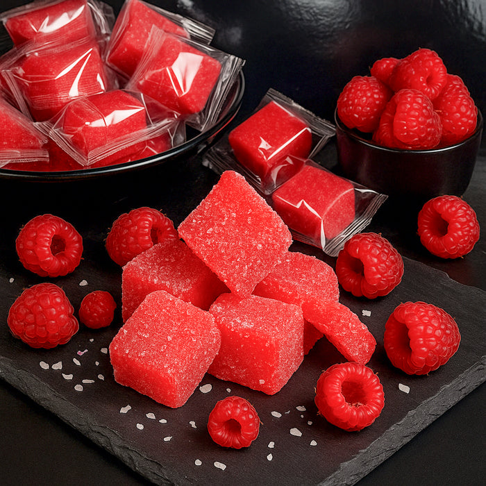 Šīs konfektes atgādina marmelādi, taču to tekstūra ir maigāka un vienlaikus stingrāka - patīkami elastīga un sulīga. Garša ir sabalansēta: ogu saldums ar vieglu skābumu, kas atgādina svaigi ievāktas avenes vasaras rītā.