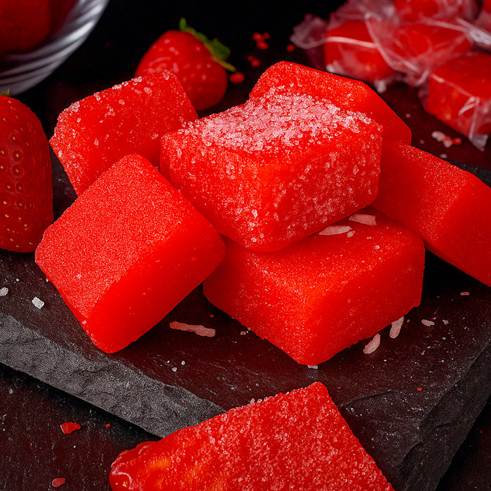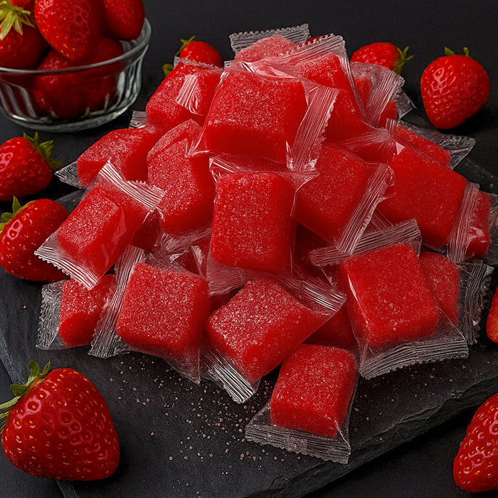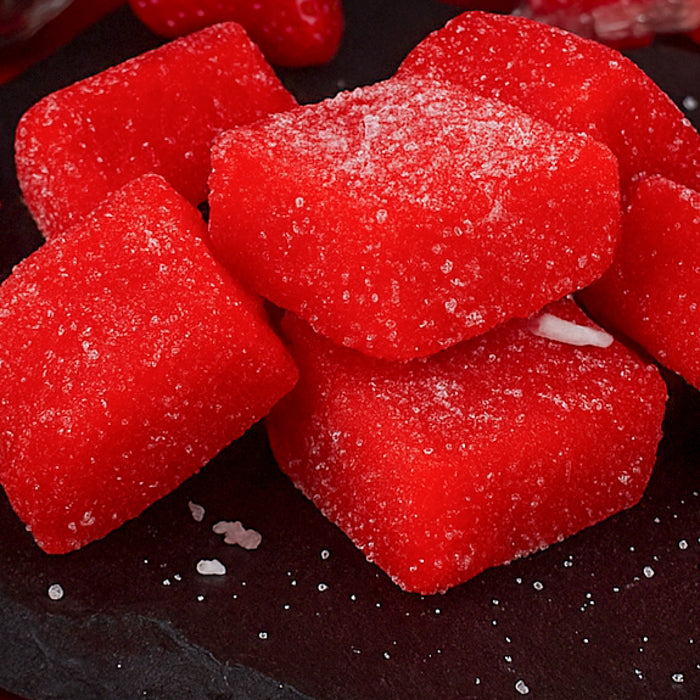 Šīs konfektes ir salds prieks ar īstu zemeņu garšu. Tās pārklātas ar vieglu cukura kārtiņu un pēc tekstūras atgādina kaut ko pa vidu starp marmelādi un želeju – tikai daudz gardākas un izteikti elastīgākas.