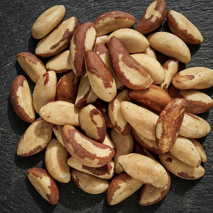 Brazīlijas rieksti ir lieli, gaiši krēmkrāsas rieksti ar maigu, sviestainu garšu un ļoti patīkamu, viegli saldenu noti. To tekstūra ir blīva, bet vienlaikus maiga — rieksts nav sauss, tas ir patīkami sulīgs un sātīgs.