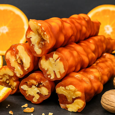 Šviesios vynuogių čurčchelos su graikiniais riešutais