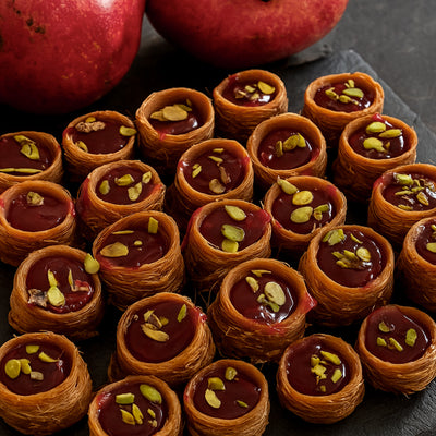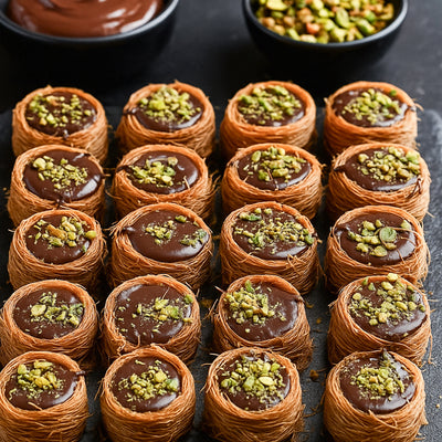 Lukumas su riešutų kremu ir traškiu kadaifu