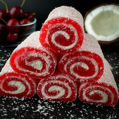 Saldus vyšnių lukumas su kokoso drožlėmis