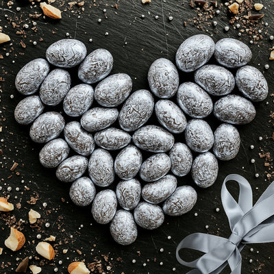 Dideli lazdyno riešutai baltajame ir pieno šokolade su šokoladinio pyrago skoniu
