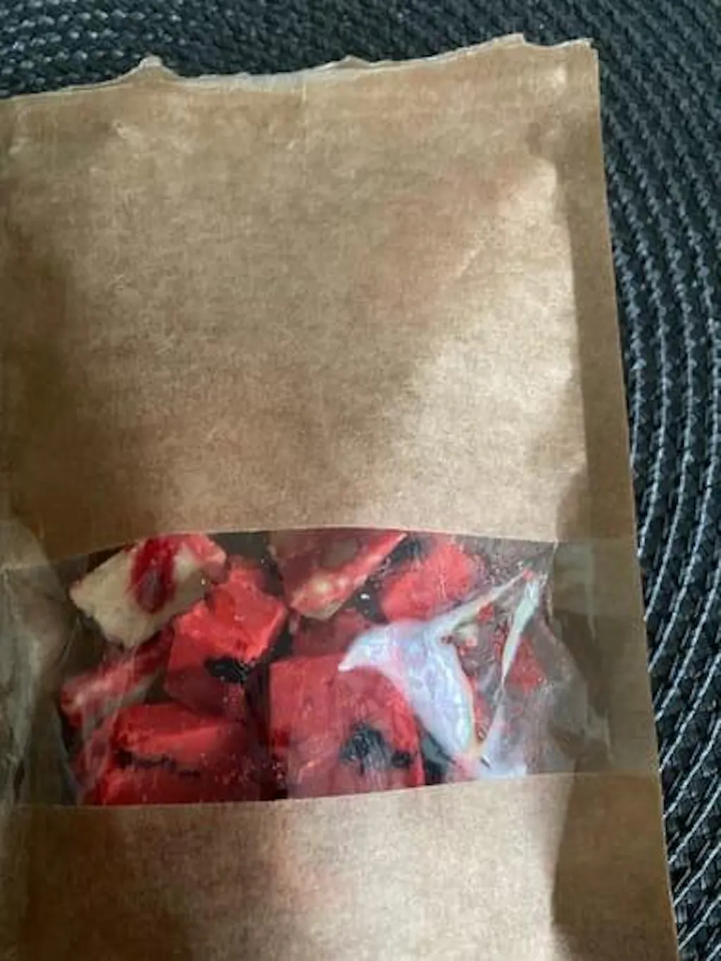 Sastāvdaļas: kokosriekstu piens, cukurs, augu eļļa, žāvētas zemenes, rozīnes, citronskābe, kālija sorbāts, dabīgajam identisks aromatizētājs